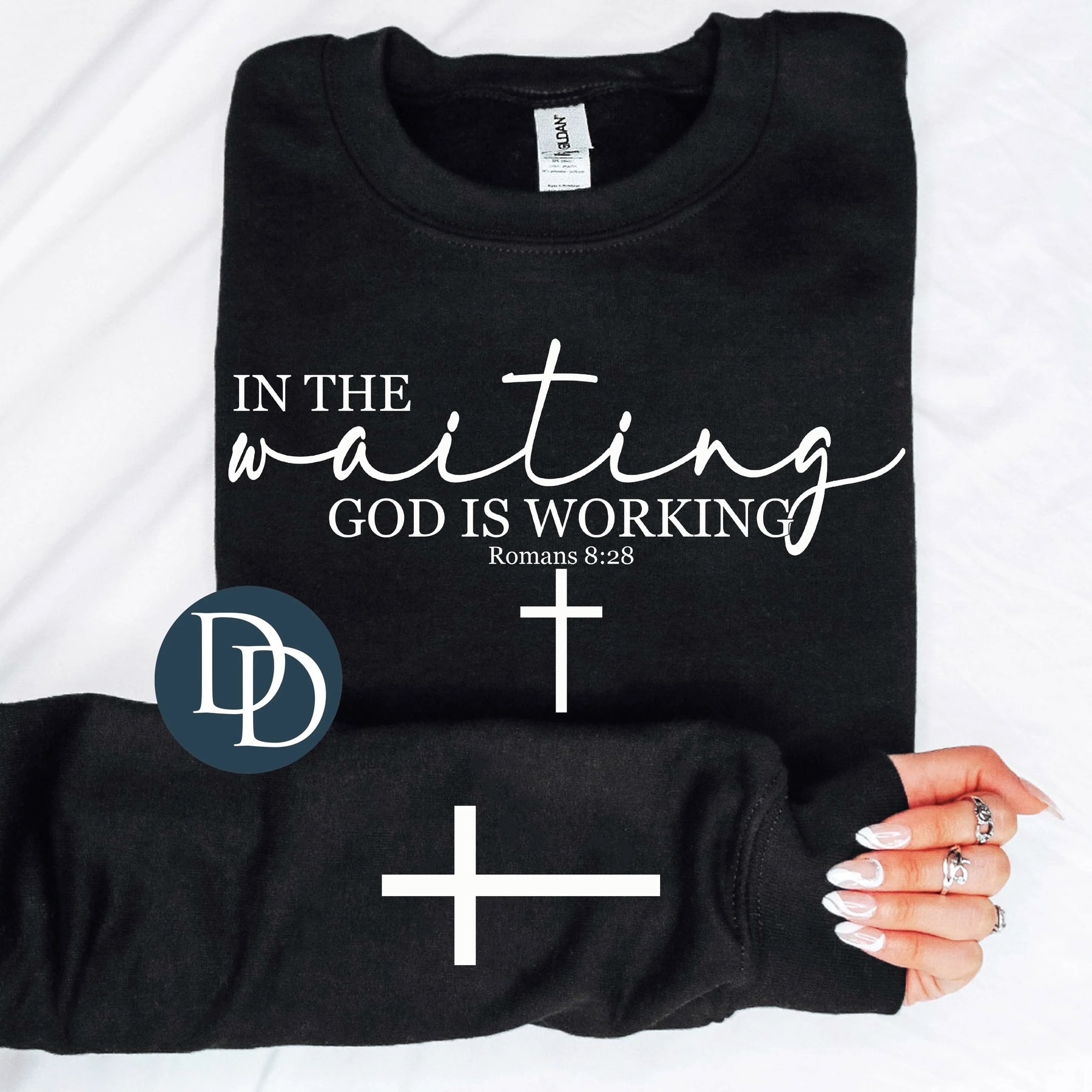 Unisex sweatshirt with a white screen printed design.